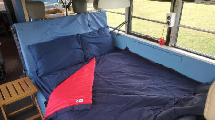 Not appearing before in any skoolie build I’ve ever seen is this 52” wide