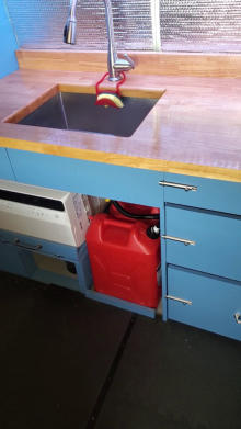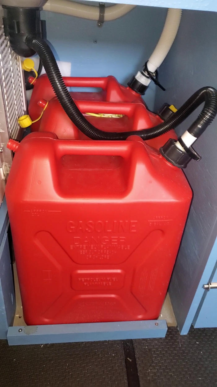 three, 5 gallon jerry jugs under the kitchen sink. That’s a total capacity